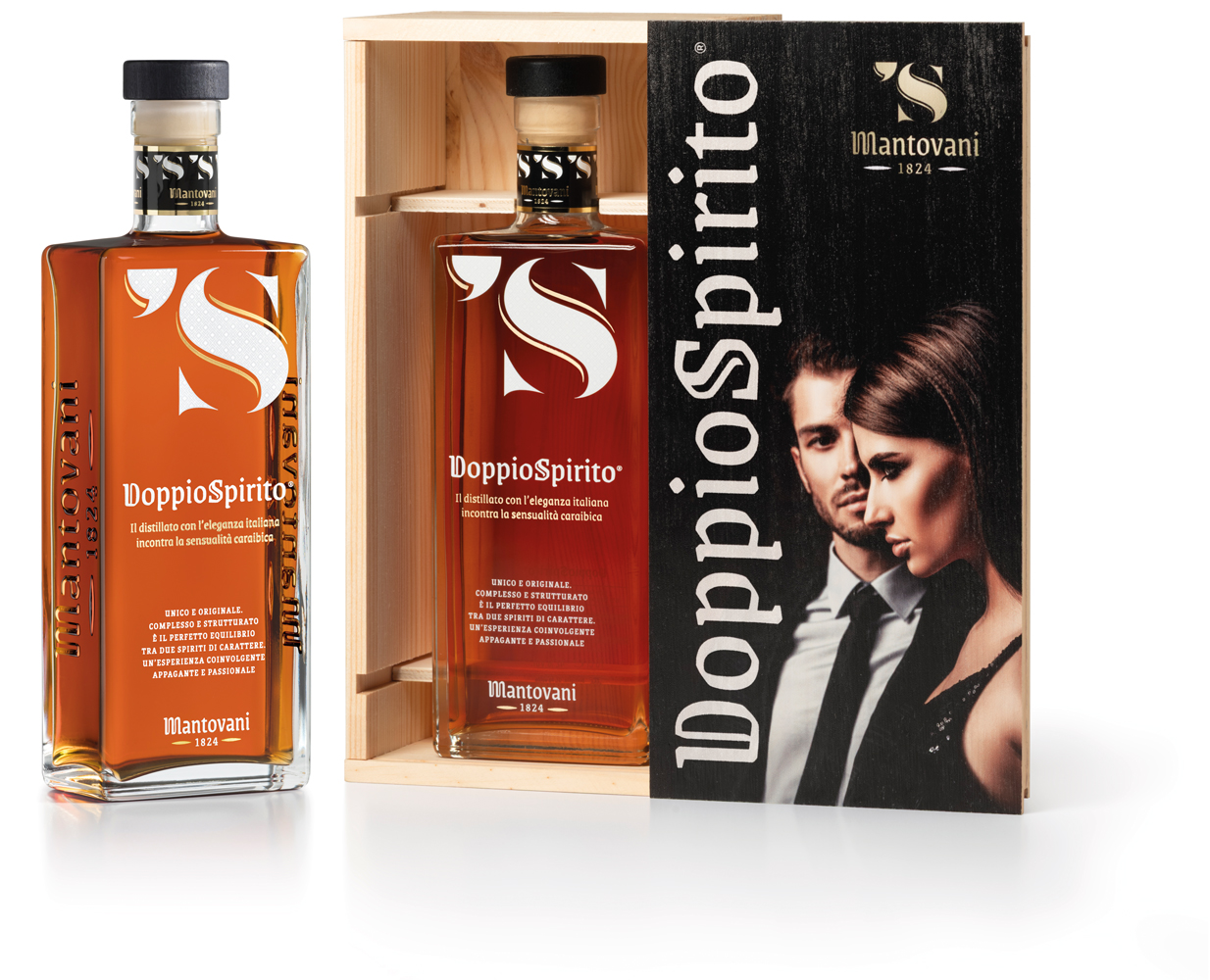 L’eleganza italiana della Grappa Invecchiata e la sensualità esotica del Rum Caribe 15 anni si incontrano per la prima volta dando vita ad un perfetto equilibrio tra due Spiriti di grande carattere. Il profumo intenso sprigiona note di bacca di vaniglia e mandorla tostata, al palato risulta sorprendentemente morbido e rotondo con gradevoli sentori di cioccolato fondente e uva passa. ’S DoppioSpirito® sa trasformare ogni sorso in un momento di puro piacere. Nel mondo ’S si trova l’eccellenza di Mantovani 1824, duecento anni di esperienza e sei generazioni di passione
